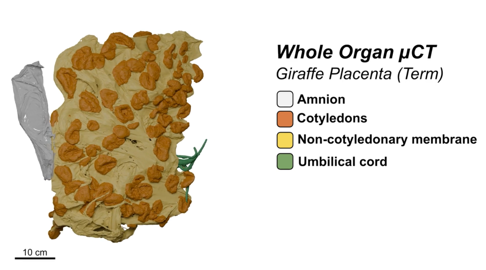 The placenta is one of the most structurally diverse organs in biology, it has evolved separately over 100 times across vertebrates, yet clinicians and biologists often rely on proxy measures such as weight, diameter or cotyledon counts to describe variation. These are easy to collect but can hide the real determinants of function- exchange surface area, exchange volume, and vascular network architecture. The team have developed new approaches to imaging and image analysis to capture these features directly, enabling like for like comparisons between species to understand the structure-function relationship in placental evolution.